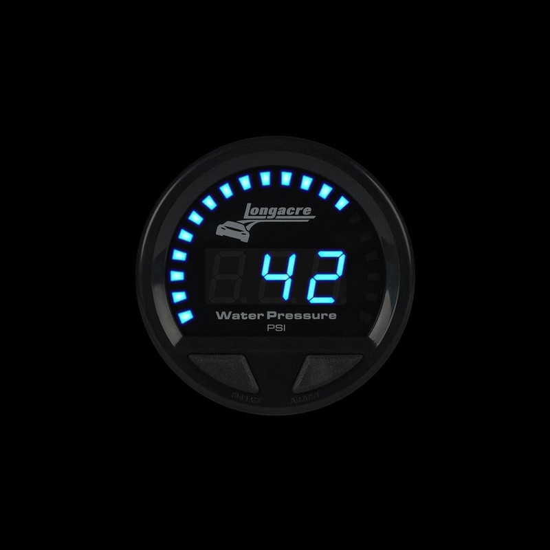 The next generation in instrumentation has arrived. Longacre Racing products is proud to introduce the all-new Digital Elite Waterproof Gauges. Engineered for wet and dirty environments, the Digital Elite Waterproof Gauges provide the absolute best in waterproof sealing. These elite gauges provide the most precise measurements on the market with unmatched resistance to vibration, heat, and moisture. Manufactured with IP-66 certified methods to be waterproof; dust tight and safe against powerful water jets. Gauge is 2-5/8″ in diameter.