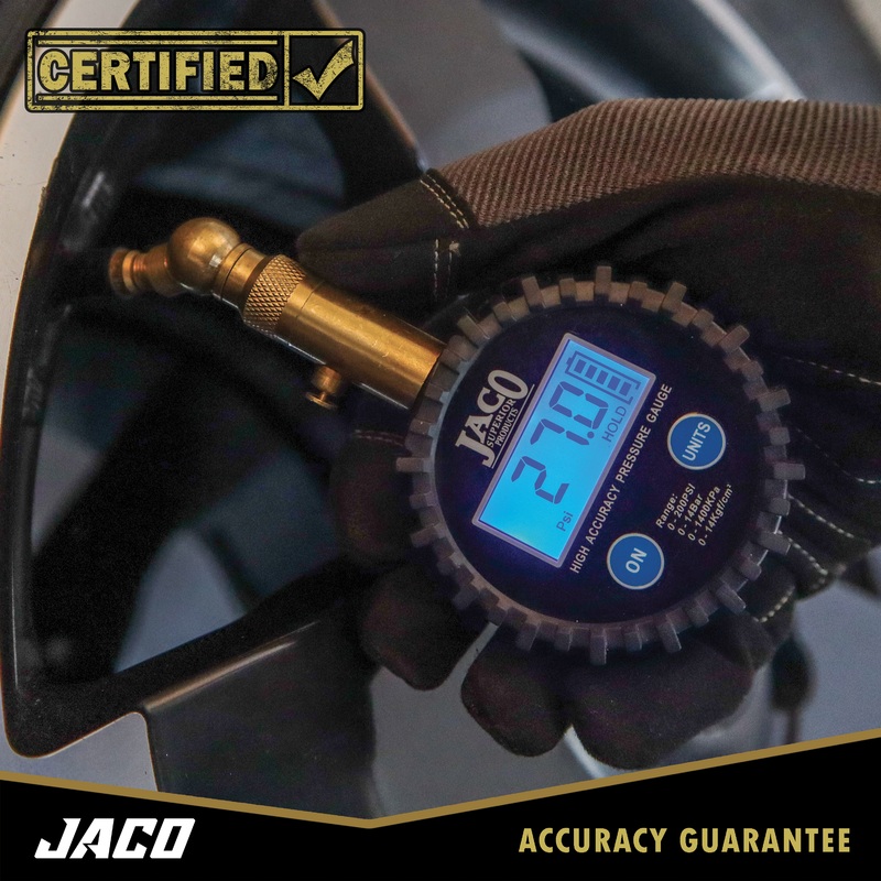 When accuracy & consistency matter, you need a master gauge you can trust. Introducing the all-new Elite Digital Tire Pressure Gauge – 100 PSI by JACO.