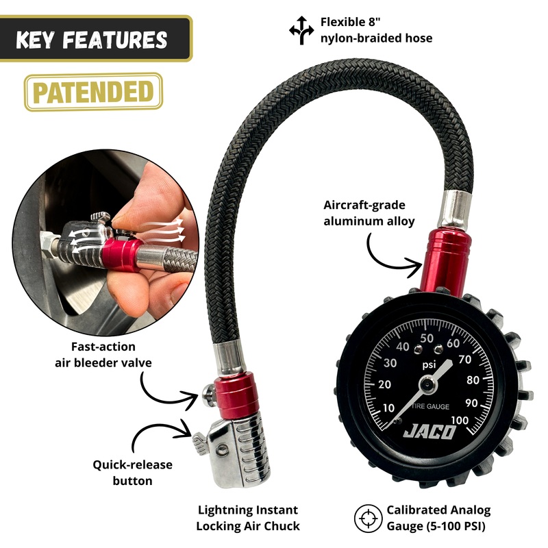 The all-new ElitePro-X gauge features a lightweight, durable aluminum alloy body, paired with our patented Lightning instant-locking air chuck and quick-release button for superior precision, durability, and effortless operation.