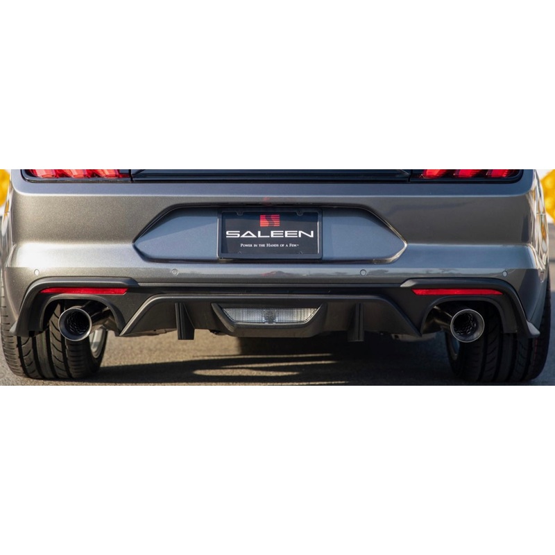 Let your engine breathe while producing a distinctive Saleen exhaust note with this Saleen Axle Back Exhaust system. These open chamber high-flow mufflers are built from 304SS and has the included stainless steel hangars welded onto the muffler case for direct fitment. Improve the throttle response of your S550 GT Mustang while simultaneously adding increased horsepower and torque.