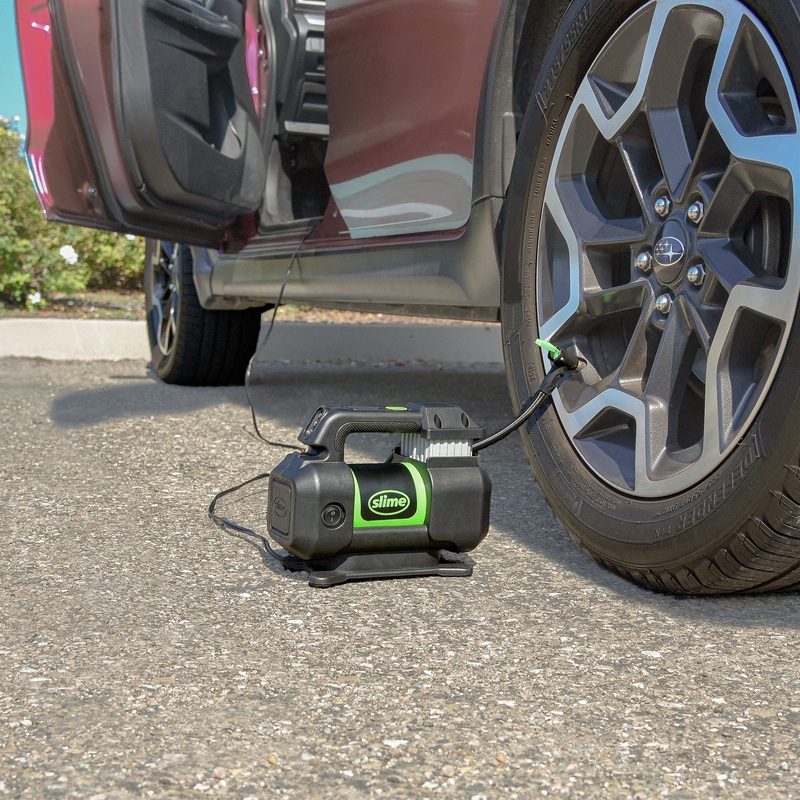 Slimes ExpertPro Power Tire Inflator also features Inflate-Right Technology (automatic shutoff at set tire pressure), an easy-to-read digital display (0-99 psi) and a bright LED work light. And dont forget the convenient cord storage and hose routing, an easy-grab handle and a canvas carrying bag that tucks the whole 12-volt tire inflator neatly away.