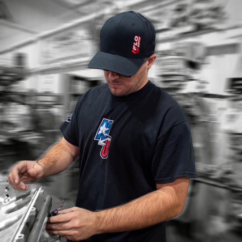 The Flo Supply mesh snap back hat is made from the FlexFit brand product line. The front of the hat is embroidered with the Flo Supply Logo.