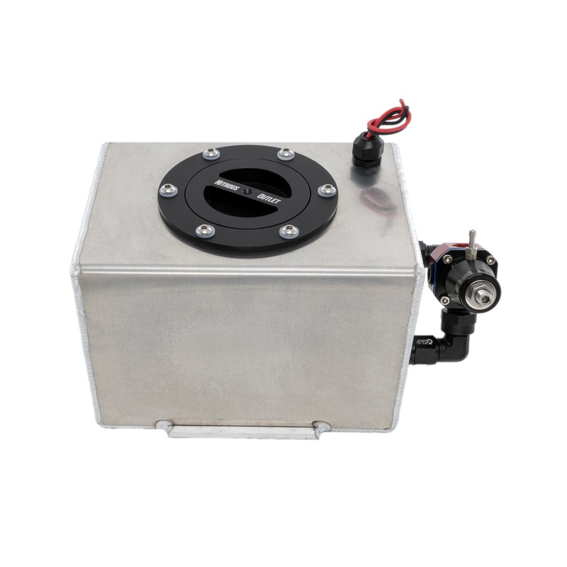 Heavy Duty Construction. Nitrous Outlet’s dedicated fuel systems come complete with a custom built hand welded 1.55 gallon fuel cell, mounting brackets, E85 compatible in tank fuel pump, Aeromotive fuel regulator, Aeroquip 6 An hose, fuel lines, and fittings.