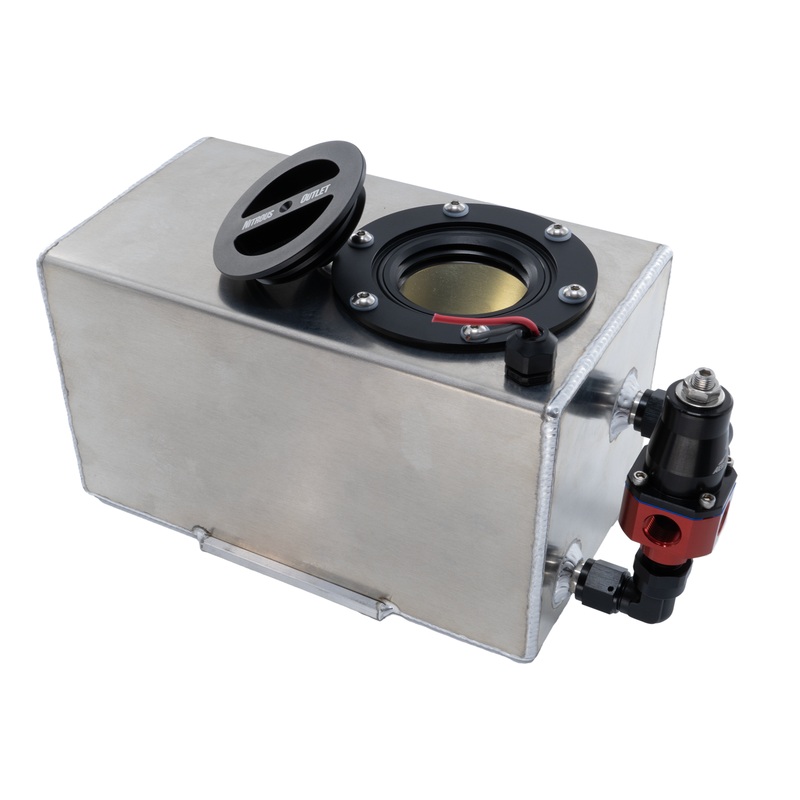 Heavy Duty Construction. Nitrous Outlet’s dedicated fuel systems come complete with a custom built hand welded 1.88 gallon fuel cell, mounting brackets, E85 compatible in tank fuel pump, Aeromotive fuel regulator, Aeroquip 6 An hose, fuel lines, and fittings.