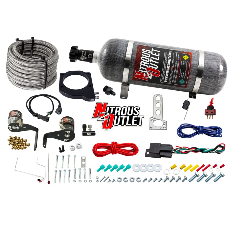 Complete System. This system includes all of the necessary components; billet aluminum nitrous plate, 50-200 HP jetting, hardware, gaskets, and wiring to properly install a wet nitrous system on your vehicle.