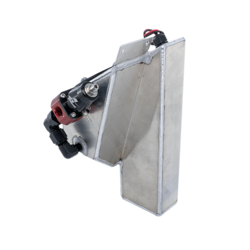 Heavy Duty Construction. Nitrous Outlet’s dedicated fuel systems come complete with a custom built hand welded 0.97 gallon fuel cell, mounting brackets, E85 compatible in tank fuel pump, Aeromotive fuel regulator, Aeroquip 6 An hose, fuel lines, and fittings.