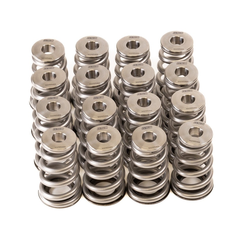 Thanks to their varying coil diameter and spacing, conical springs act as natural harmonic dampers, absorbing the shock in the valvetrain. This means less stress, less wear, and a longer life for your engine components. This level of protection is essential for todays engines, which are being pushed to their physical and mechanical limits. Every GSC conical spring undergoes a super-finished surface treatment in addition to a patented, multi-step heat treatment process. The result? A super reliable, high-performance spring that lets you push higher RPMs and use more aggressive cam profiles with confidence.