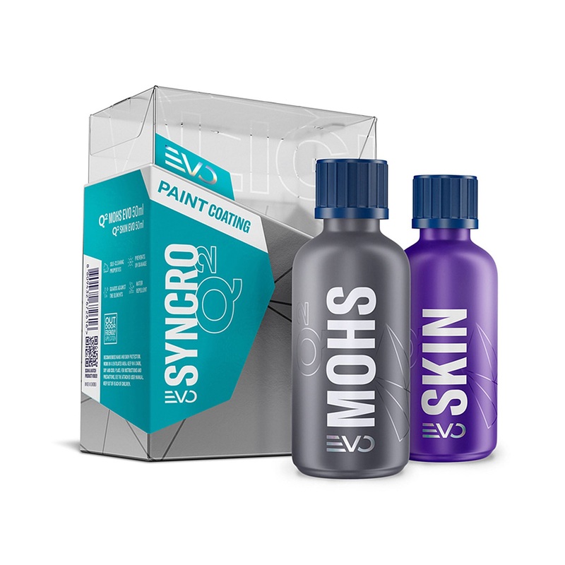 Q Syncro EVO is a unique opportunity to apply a specially designed coating system consisting of a sophisticated base coat Q Mohs EVO and the Q Skin EVO topcoat, which increases gloss and the durability of the hydrophobic effect massively. The topcoat provides also very strong colour enhancement, easily noticeable on dark coloured paints.