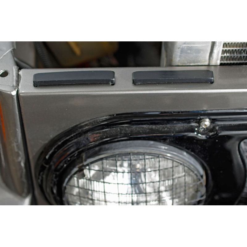 Fits 1958 -10/1984 FJ40/45, BJ & HJ Series – Cushions Hood to prevent metal to metal contact from the bib. Meets or Exceeds OEM Specs. NOTE* This kit includes all four pads that attach directly to the bib. If you are looking for a kit that includes the side bumpers that attach to the aprons, please search our store for our COMPLETE hood pad kit, SKU: A48