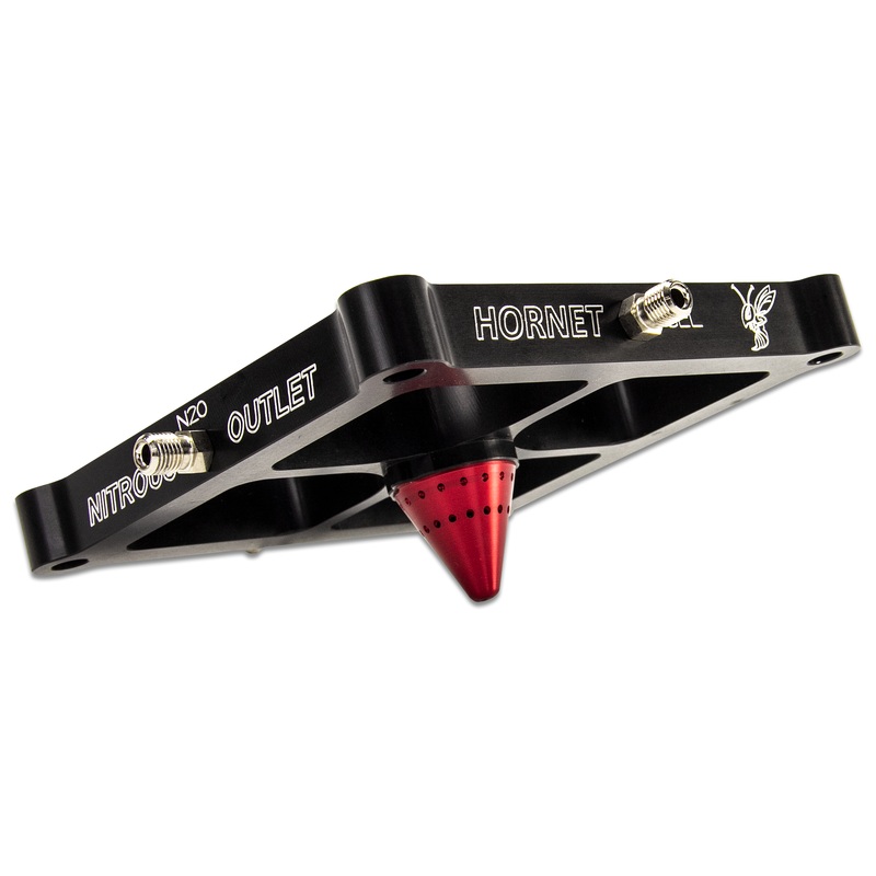 The Hornet 2 is based on the hugely successful Stinger Nitrous Plate lineup and follows the ideology that nitrous plates are not one-size-fits-all. It is designed to saturate the incoming air flow by placing the discharge cone at the top of the intake throat while discharging the nitrous horizontally across the intake plenum in a 360 pattern.
