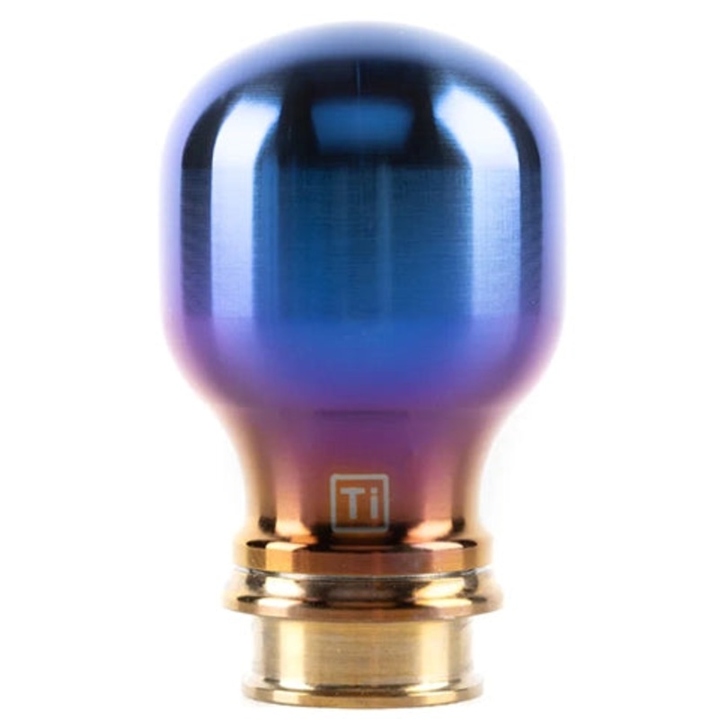 This special knob is machined from Titanium, polished and finished by hand, then anodized in our facility. Each knob includes a collar of your choice, so there is no need to purchase two separate pieces.