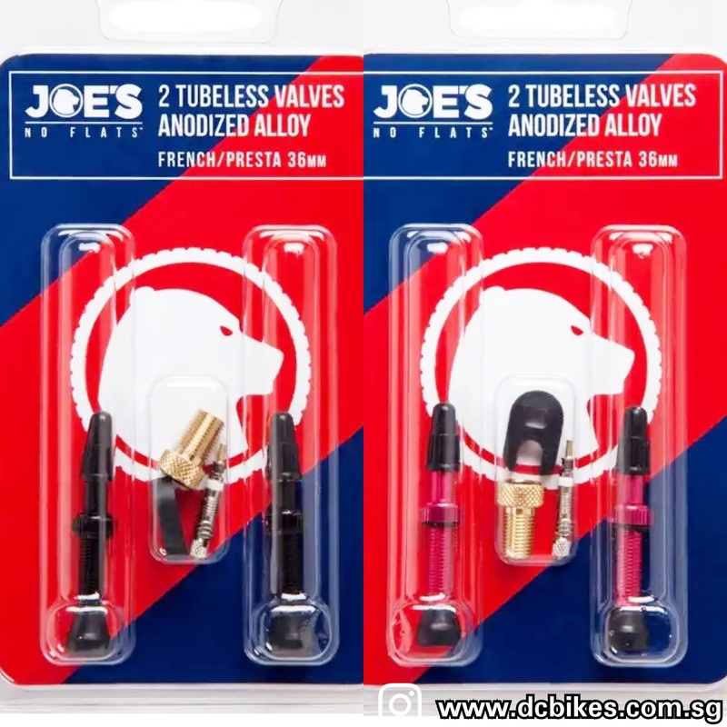 Free to ride, travel, explore, commute or compete, Joe’s No Flats provides the bicycle market with the worlds most effective tubeless solutions. This Tubeless Presta Alloy Valve Kit contains two 36 mm tubeless French/Presta valves that will fit all rims, whether standard or tubeless.