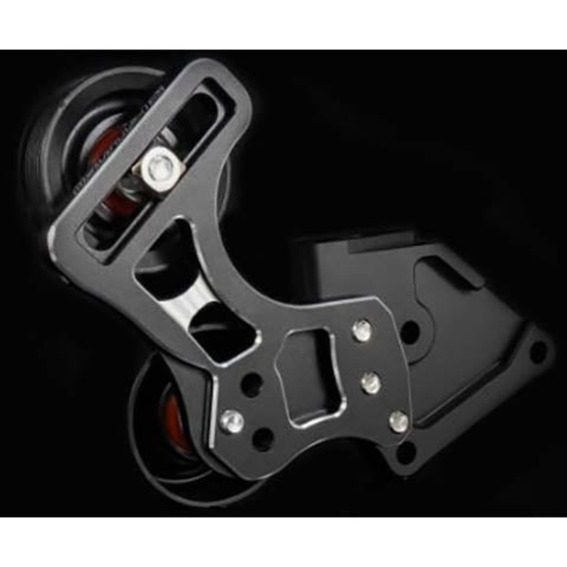 The K-tuned Side Mount Pullet Kit was designed to merge the 2-Bolt side engine mount on the timing chain case with two adjustable pulleys. By joining these parts together we were able to create a strong and compact mount/pulley combo that opens up some much-needed space in the engine bay of a K-Swapped and original K-Powered car. Both pulleys are adjustable, the black pulley has three mounting positions, and the top black pulley slides along the bracket. Note that this kit does require deleted or relocated power steering on some vehicles, but only on applications that are pump driven, like the RSX. For installation, the factory alternator stays mounted in its OEM location, while the factory auto tensioner and idler pulley for the belt is completely removed. The result is more space exactly where it is needed, gaining approximately 2 inches of clearance right beside the intake manifold. This is perfect for fitting some of the larger, aftermarket, straight-runner intake manifolds. options which until now required quite a bit of modification to fit. Rotrex supercharger users will also be thankful for this design because the Rotrex charger cleanest look that we have developed yet, and does allow AC to be kept in place for the customer that wants the option.