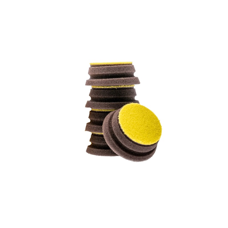 Medium abrasive sponge for removing moderate weathering and scratches using the Fine Cut F6.01. The short height of 23 mm creates low torsion forces, very good handling and the highest level of stability. The special density of the foam material enables long-lasting compression hardness during polishing. The optimised reticulation (open cellular structure) and cell count contributes to a high level of abrasiveness and excellent hygiene factors. The milling edge ensures extra flexibility for the pads, enabling them to fit around contours easier. The colourful non-woven material, suitable for polishing, ensures process safety.