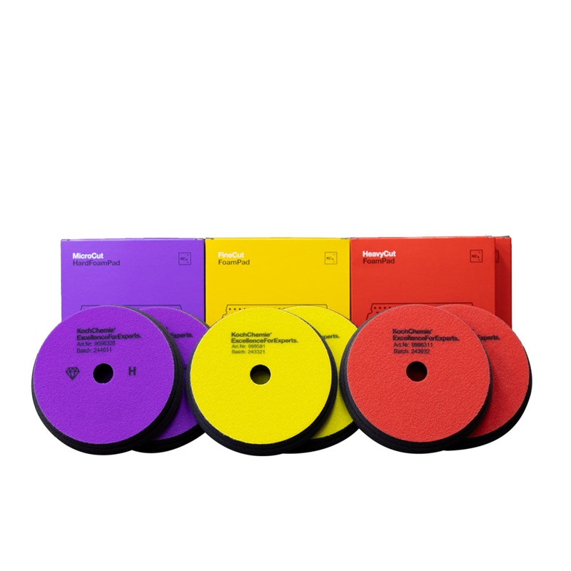 This refill kit includes three of Koch Chemies most trusted foam pads: the Heavy Cut Foam Pad, Fine Cut Foam Pad, and Micro Cut Hard Foam Pad – covering every correction step from aggressive cut to fine polish. It’s perfect for detailers who already have the Koch Chemie compounds and just need fresh pads to keep working.