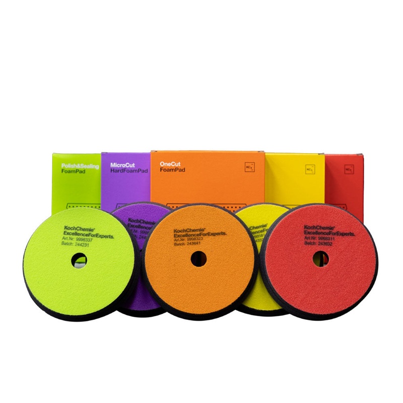 This five-pad kit gives you direct access to Koch Chemies full range of foam polishing pads – in the hard paint formulation. Its ideal for detailers working on harder clears, European paint systems, or any surface where harder pads are needed to restore the paint back to its former glory.