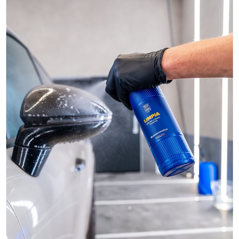 LIMPIAwas created to workin depth, penetrating the pores of the film toeffectively remove embedded dirtwithout altering its chemical-physical structure. Its formula is inspired by the logic ofprofessional cosmetics: it works like atechnical cleansing milk, able to preserve theelasticity, top coat, and regenerative capacity of the PPF, without weighing down or stressing the surface.
