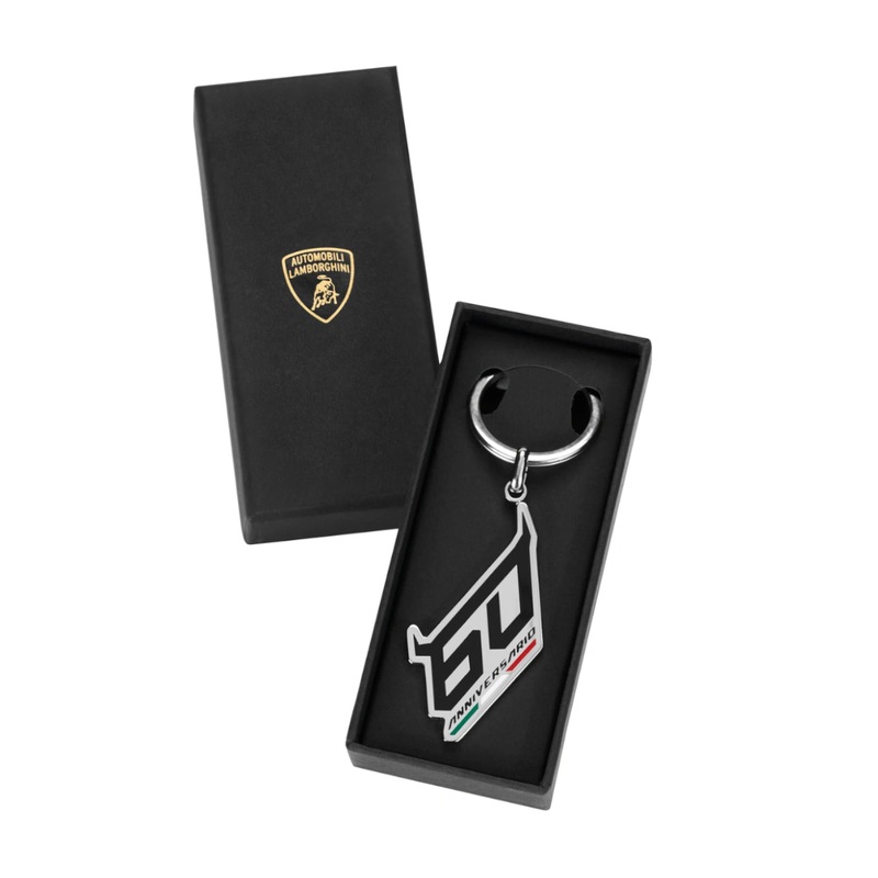 “60 Anniversario Special-Edition Automobili-Lamborghini Keyring made from brass and detailed with a silver and enamel finish.