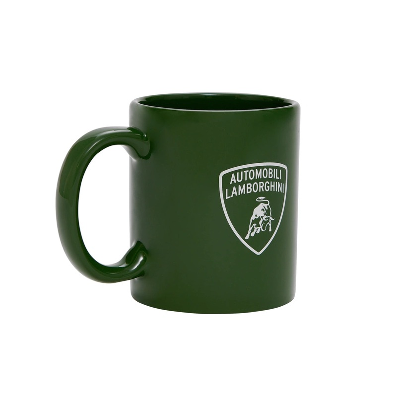 This green mug is made of ceramic with the Automobili Lamborghini shield in contrast.