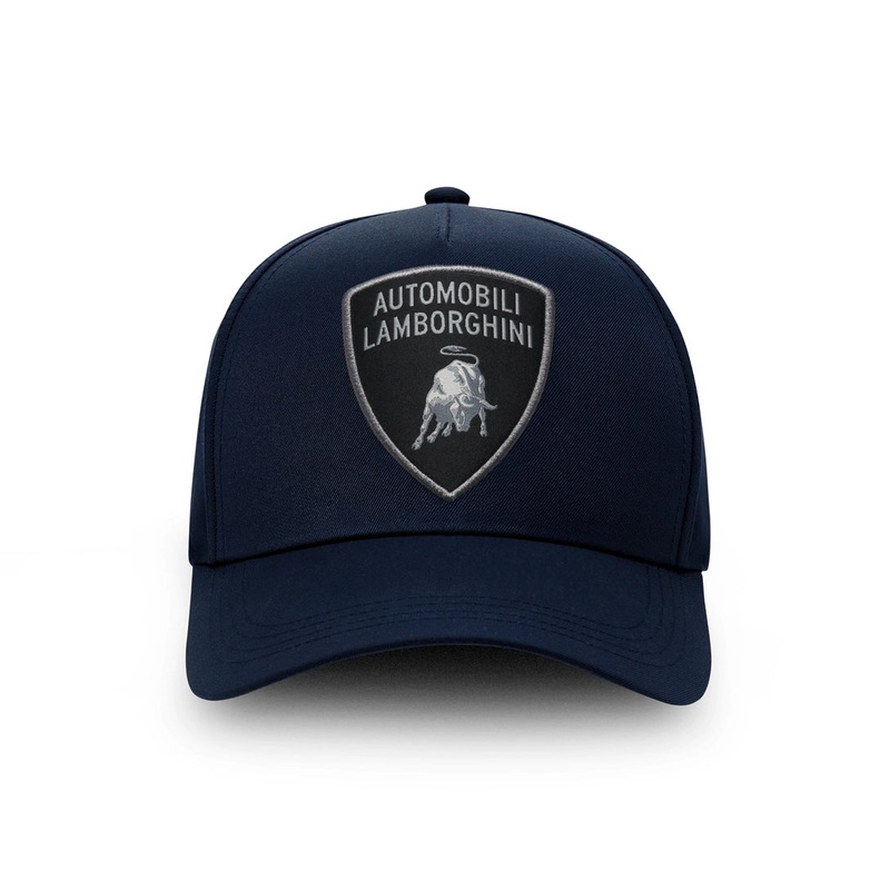 Cotton cap, customized with an embroidered silver-tone shield logo.