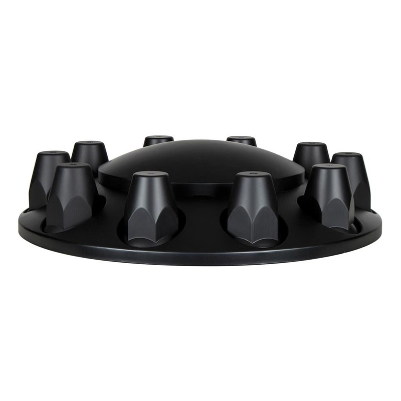 - Kit includes: 2 black plastic dome front axle covers, 4 black plastic dome rear axle covers, 60 black plastic 33mm thread-on nut covers & 1 nut cover tool.