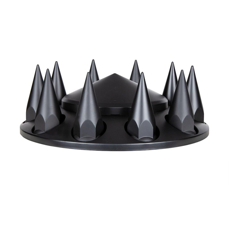 - Kit includes: 2 black plastic pointed front axle covers, 4 black plastic pointed rear axle covers, 60 black plastic 33mm spike thread-on nut covers & 1 nut cover tool.