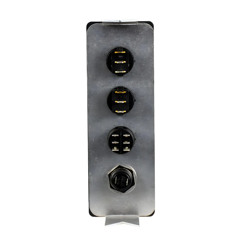 This panel has 1 LED rocker switch for system arm, two rocker switches for heater activation and remote bottle opener, and 1 momentary switches to control system purge.