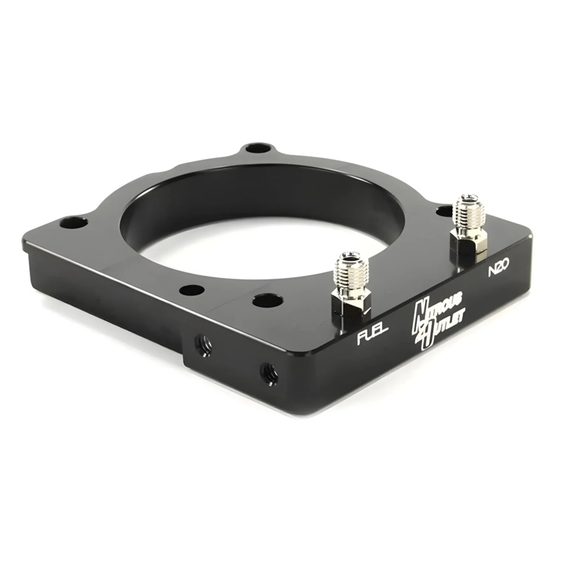 Wet Nitrous Plate. This system includes a billet aluminum plate to fit 5.7/6.1L Hemi intakes with a 90mm throttle body and is capable of flowing up to 400 HP of nitrous. Each billet plate has a black anodized finish with laser etched logo and fuel/nitrous labels.