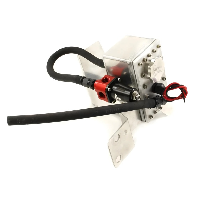 Heavy Duty Construction. Nitrous Outlet’s dedicated fuel systems come complete with a custom built hand welded 0.50 gallon fuel cell, mounting brackets, E85 compatible in tank fuel pump, Aeromotive fuel regulator, Aeroquip 6 An hose, fuel lines, and fittings.