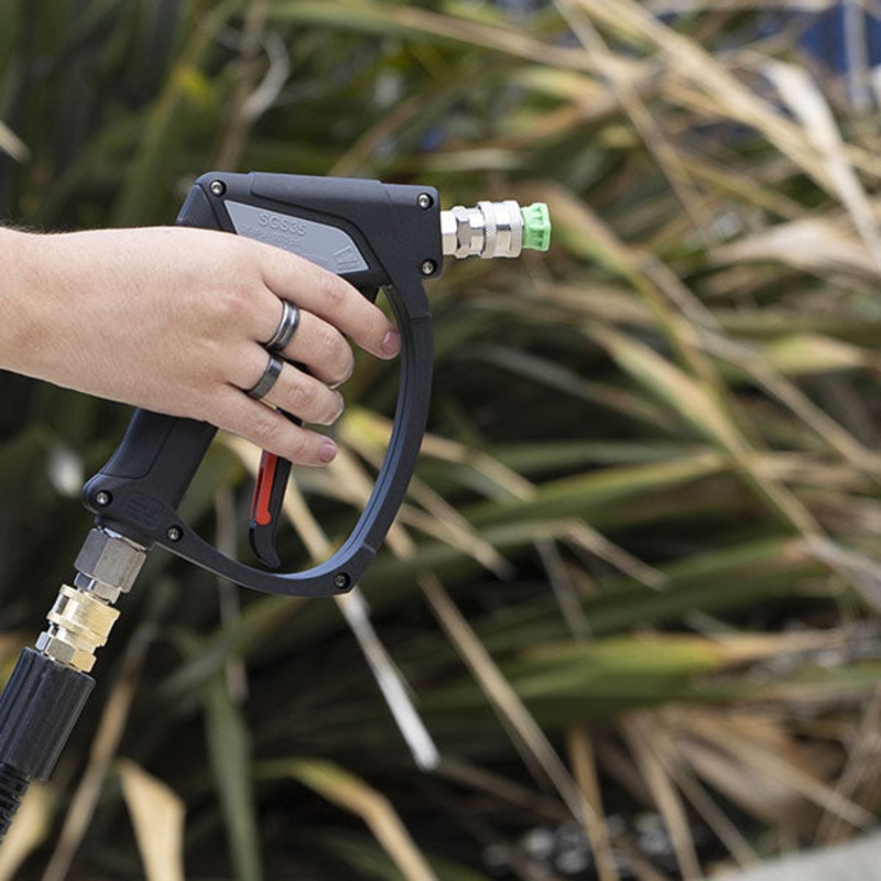 The SGS35 Nero features a full stainless steel body and internals, a ceramic ball valve for high chemical resistance, and a built-in stainless swivel to keep your hose from binding. Rated to 5075 PSI, this gun can take the pressure – and dish it out with finesse.