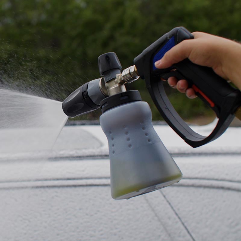 You get vertical and horizontal spray control, fan adjustment, and a top-mounted dilution dial – all working together to give you dense, consistent foam exactly how you want it. Pair it with a high-pressure washer, and this thing lays down snow.