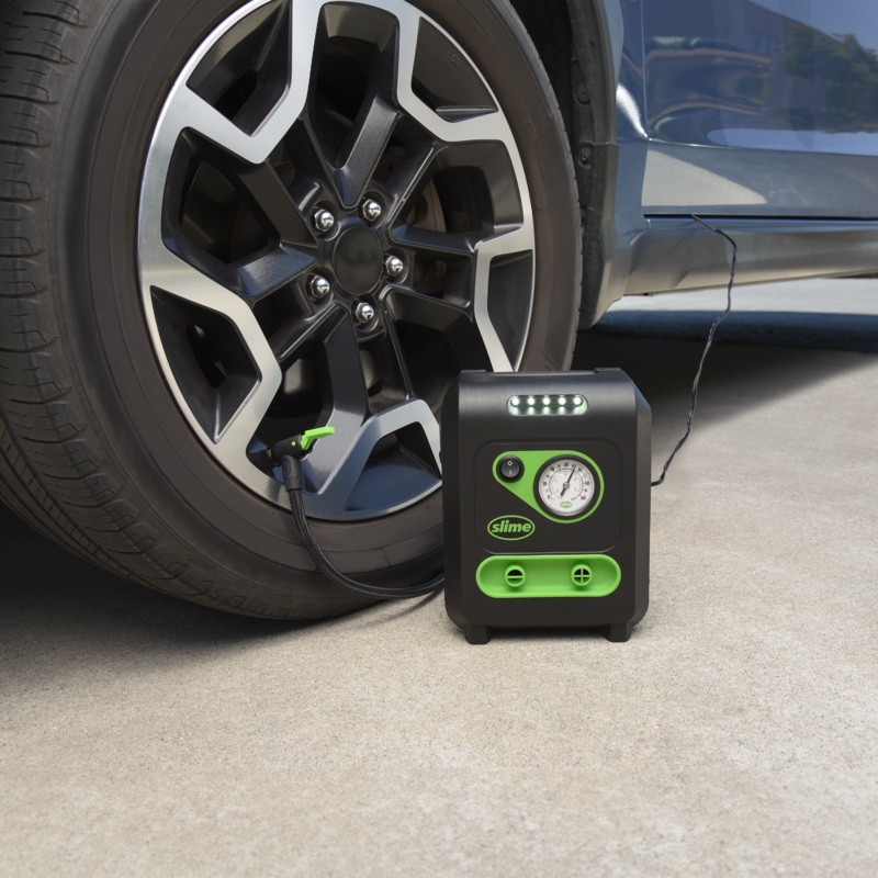 The Slime Multi-Purpose Tire Inflator features a combination of high pressure and high volume air hosesso you can easily and quickly inflate both tires and mattresses.