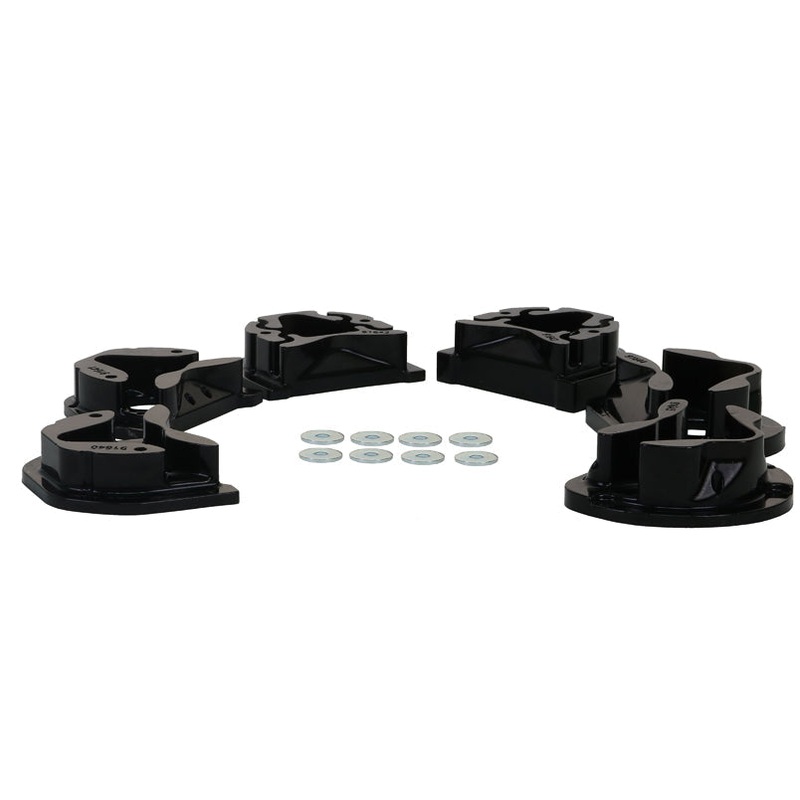 Soft factory bushings whilst they do a good job of not transmitting engine vibration, they do create vague and unresponsiveness in the vehicles drive train. Under hard acceleration, the engine and transmission rotates, Nolathane engine mount bushings work in conjunction with the OE rubber bushing giving your car better throttle response as well as more crisp and defined gear shifts.