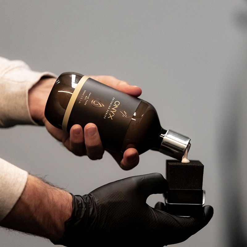 Onyx is easily applied onto the wheel using a foam applicator and lasts longer when tyres are cleaned properly with a dedicated cleaner or all-purpose cleaner.
