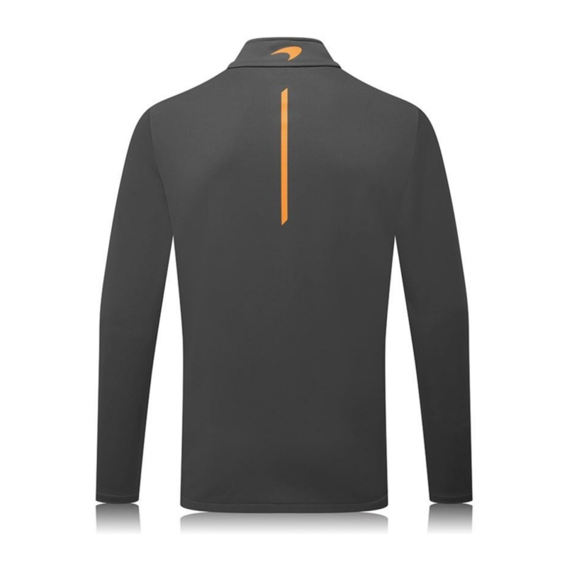 Our New O’Gara x McLaren Softshell Jacket, features a sleek grey design with Papaya orange accents.
