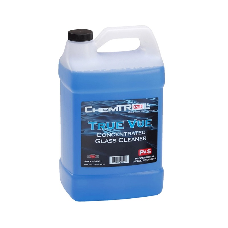 True Vue Concentrated Glass Cleaner is an excellent and effective water based glass cleaner that removes road film, smoke and dirt. True Vue Glass Cleaner may be diluted anywhere from 4:1 up to 10:1 depending upon desired performance.