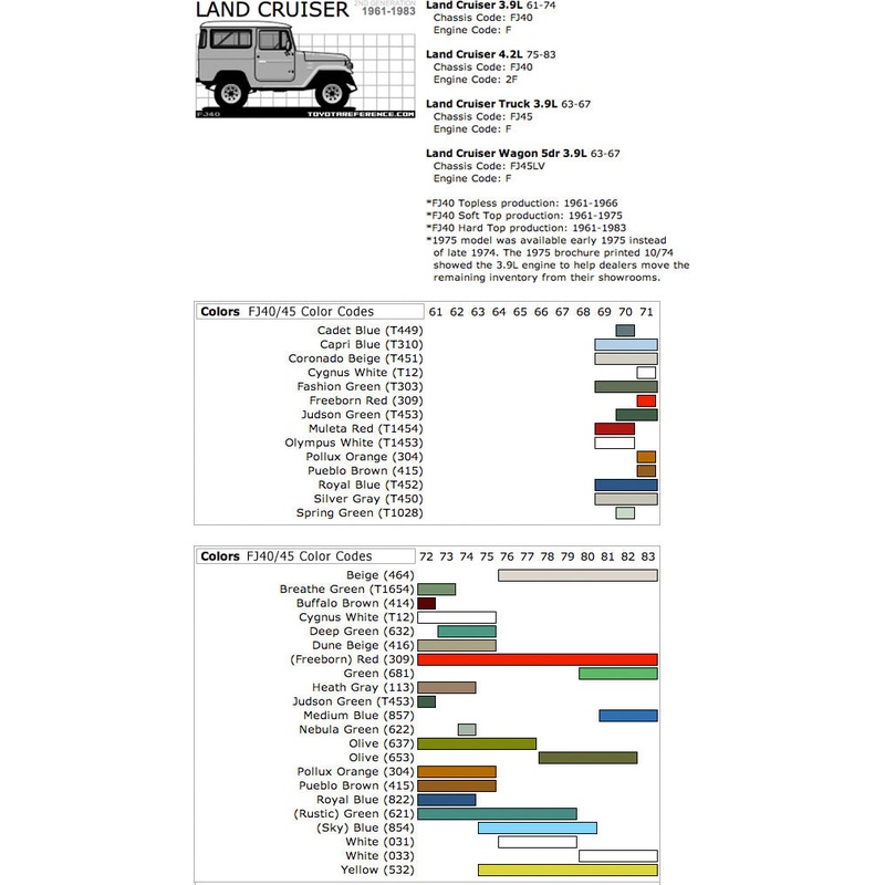 – Enamel paint with high gloss finish For Toyota Paint Code Reference, click on this link – http://www.toyotareference.com/landcruiser/1961-1983