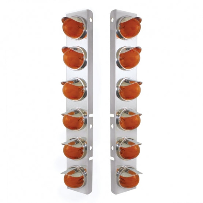 Peterbilt Stainless Front Air Cleaner Bracket w/ Twelve 9 LED Dual Function GLO Watermelon Lights & Visors – Amber LED/Amber Lens
