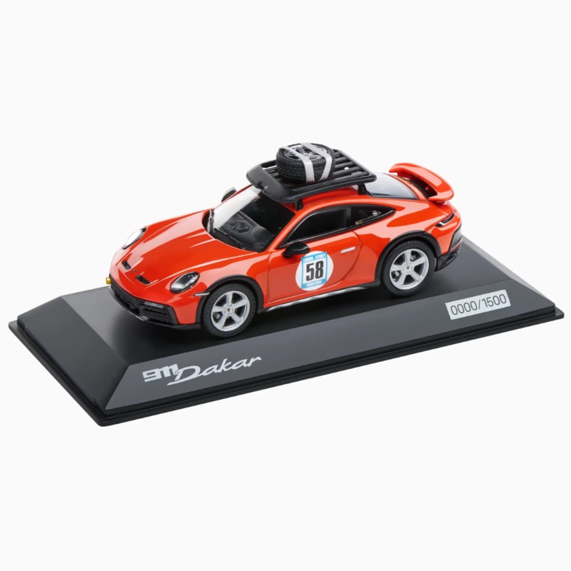 Add a striking and adventurous piece to your collection with this exclusive 1:43 scale model of the Porsche 911 Dakar (Type 992). This meticulously detailed die-cast model is a must-have for any collector.