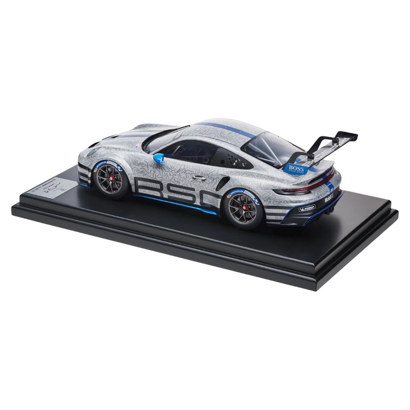 Exceptional Scale (1:12): At this substantial scale, the model offers an unparalleled level of intricacy and presence. A 1:12 scale model of the 911 GT3 Cup (992) typically measures approximately 38 cm (15 inches) in length. Including its baseplate and display case, overall dimensions can be around 47 cm (W) x 27 cm (D) x 19 cm (H). This larger scale allows for an incredible depth of detail that smaller scales cannot achieve.