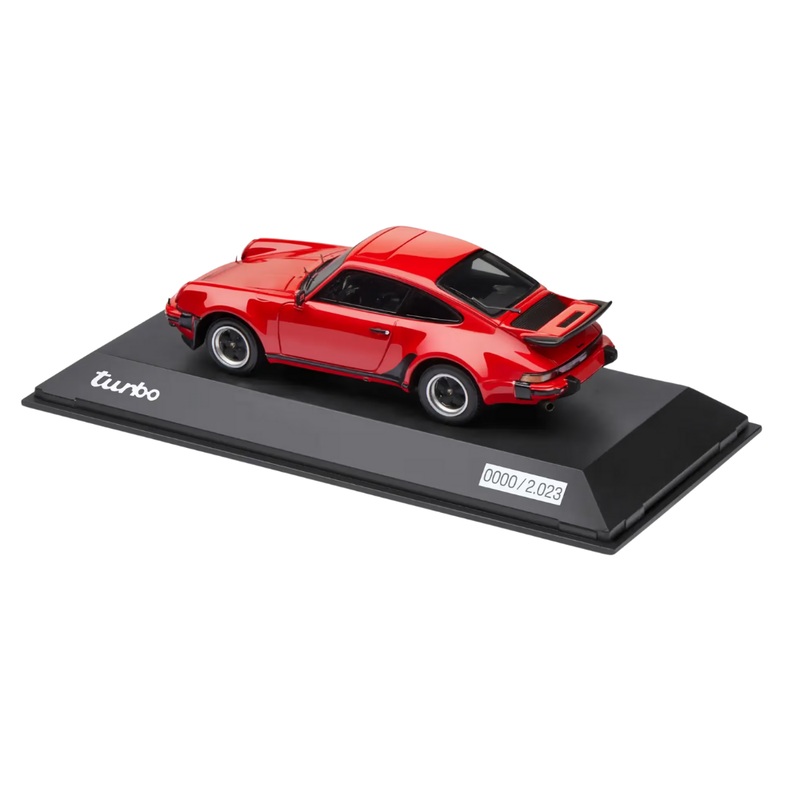 Authentic Design: The model features a striking Impulse Red exterior paired with a classic black interior, meticulously replicating the iconic 930 Turbo aesthetic.