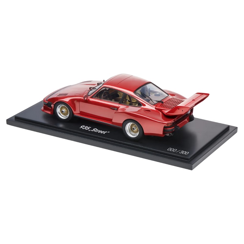 The original Porsche 935 “Street” was a legendary one-off road car created in 1983 for TAG owner Mansour Ojjeh by Porsche’s “Sonderwunsch” (special request) department, the precursor to Porsche Exclusive. It was essentially a road-legal 930 Turbo dressed to look like the dominant 935 Group 5 race car, featuring its distinctive slant-nose, wide flares, and extended rear bodywork. This model celebrates that unique piece of automotive history.