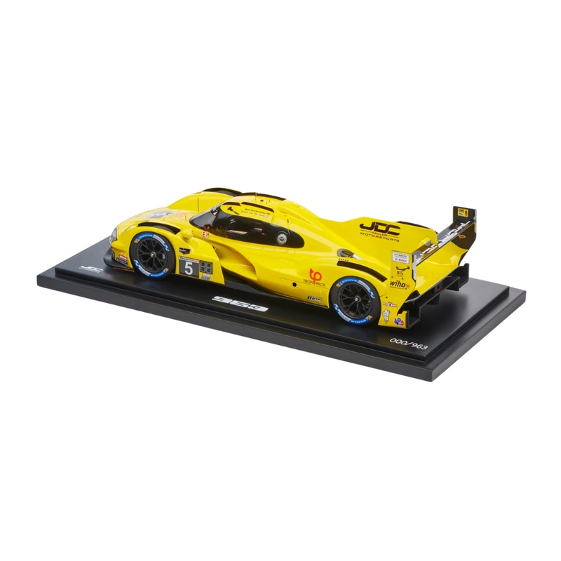 Authentic Design: The model boasts a vibrant yellow exterior perfectly complemented by a sleek black interior, faithfully capturing the distinctive livery of the JDC-Miller Motorsports car.