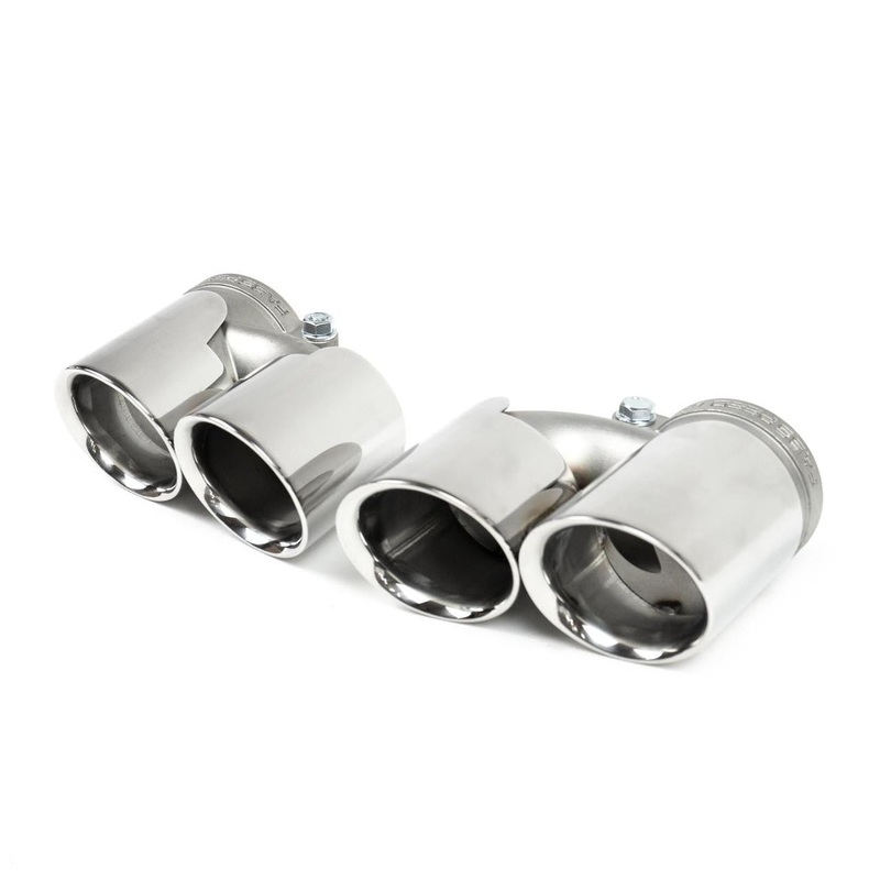 Includes Fabspeed’s Deluxe Quad-Style Tips (choice of Polished Chrome or Satin Black); also compatible with OEM tips.