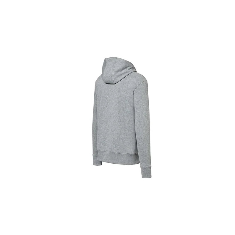 This light grey men’s pullover is a comfortable and stylish choice. It features a superimposed front pocket and two side slits for a modern look. The print and hood lining are inspired by the classic Gambia Red exterior color of the legendary Porsche 944.
