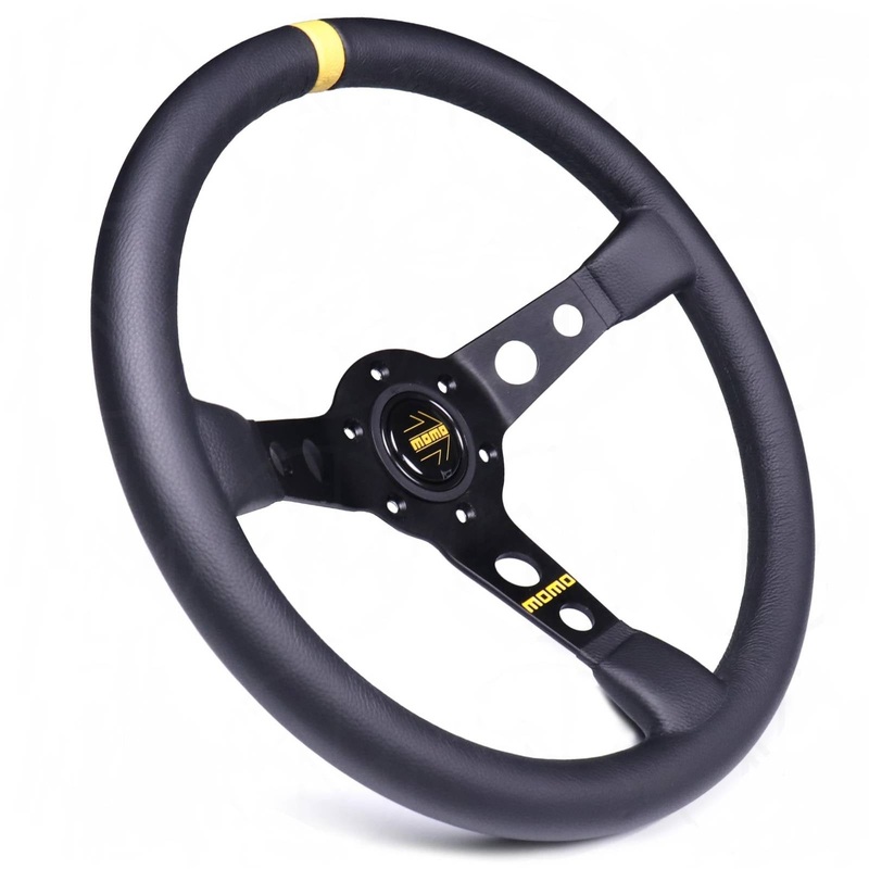 Simplify your driving experience with the Momo Mod 07 steering wheel. Made in Italy, this classic 350mm wheel fits all models through specific hubs and comes with a MOMO horn button. Embrace comfort and style on the road with this sleek and reliable upgrade.
