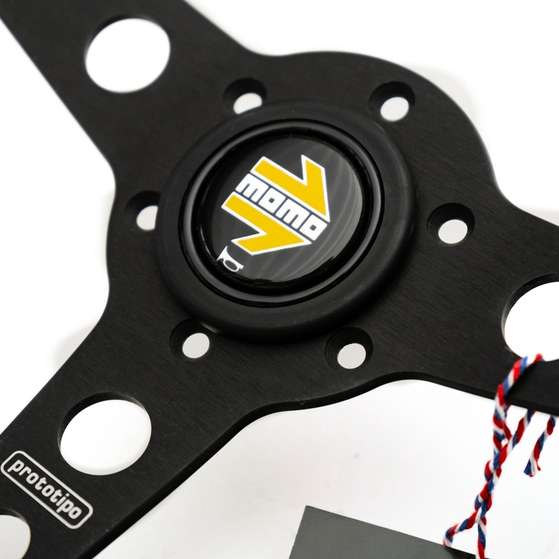 This is a Momo Prototipo Steering Wheel in black, with a 350mm diameter. It’s made in Italy and considered a classic design from Momo.