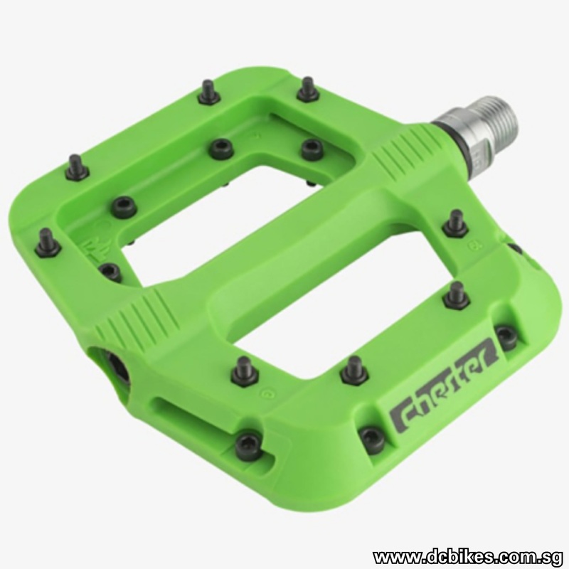 The Race Face Chester Composite Flat Pedal is designed for those who ride hard and carry out their own maintenance. When this flat pedal finally needs a service, the internal cartridge bearings and bushing can be replaced easily.