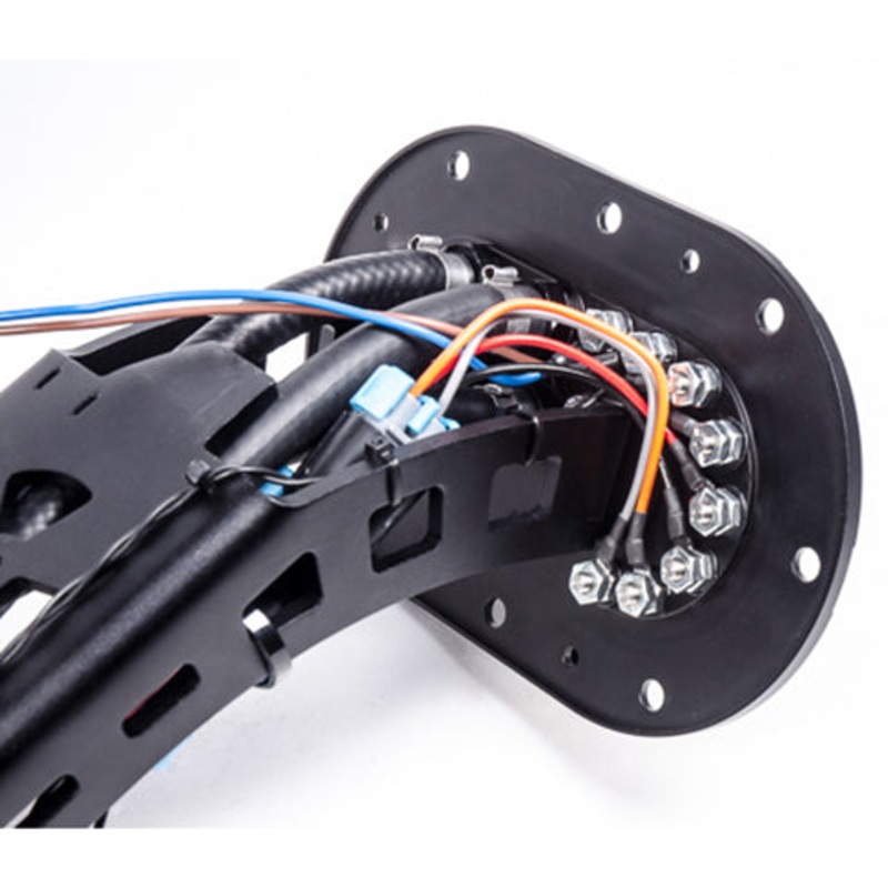The custom-designed stainless electrical studs easily handle the high current demand that compact bulkhead connectors lack. These serviceable connections are properly sealed and impervious to all standard and exotic fuels. The low-profile design keeps all wiring tucked nicely underneath the OEM cover plate. Nonconductive acorn nuts are provided to prevent any accidental short circuits.