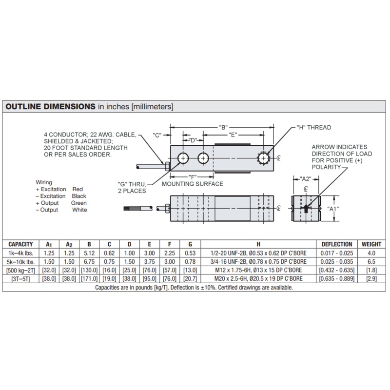 Model 5123 is a low profile single-ended shear beam type load cell made from nickel-plated tool steel . This product is suitable for small and medium platform scales, overhead track scales, hopper scales, and process weighing applications . Reliable sealing is ensured by the proprietary TRANSEAL potting compound and additional mechanical protection of the strain gage area . Ease of installation is made possible through the use of a partially threaded hole to accept levelling feet, load buttons, or loading cables.